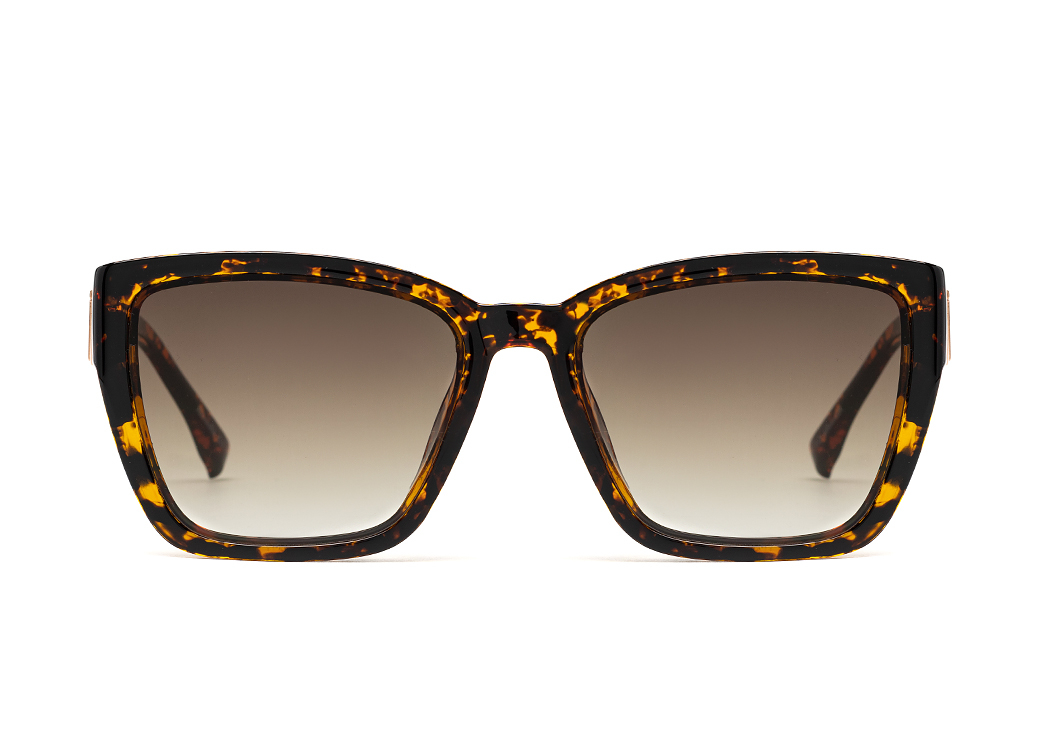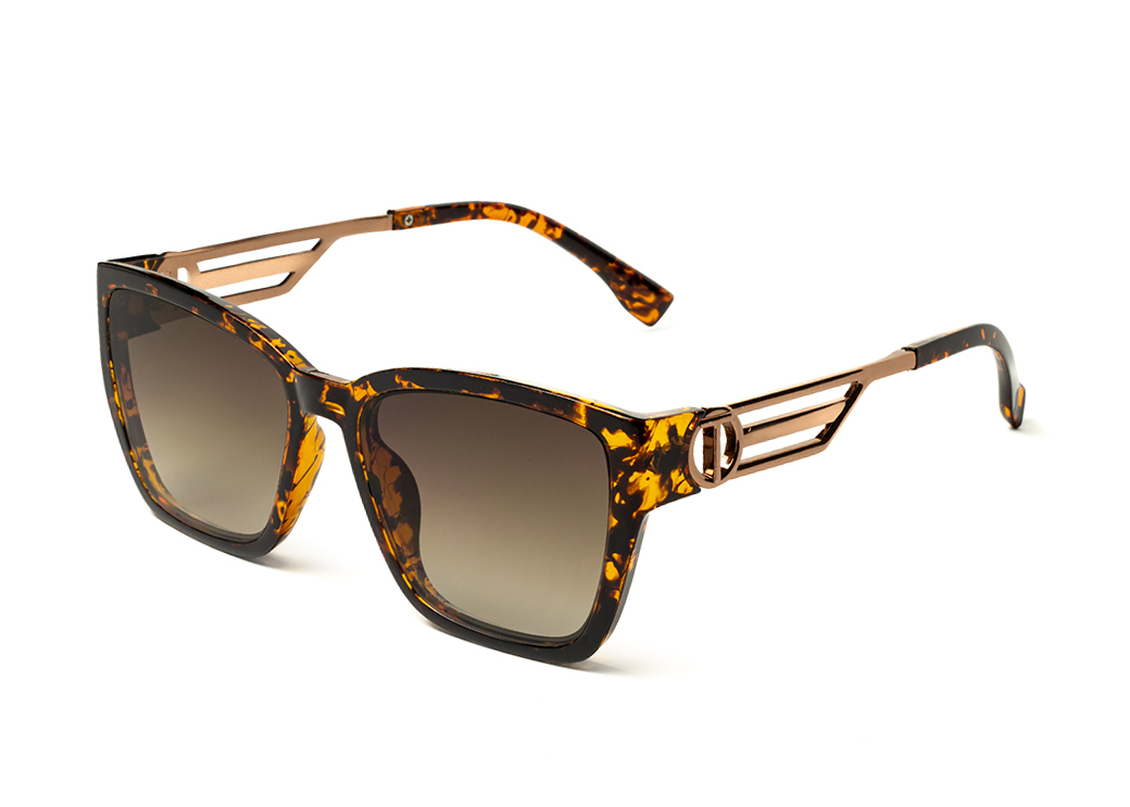 Duże,klasyczne okulary przeciwsłoneczne w kolorze panterka brąz.Elegancki metalowy zausznik.