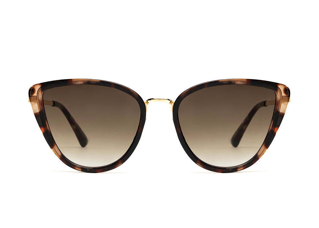 Okulary przeciwsłoneczne o kształcie "kocie oko" w kolorze brąz panterka.Metalowy mostek i zauszniki.