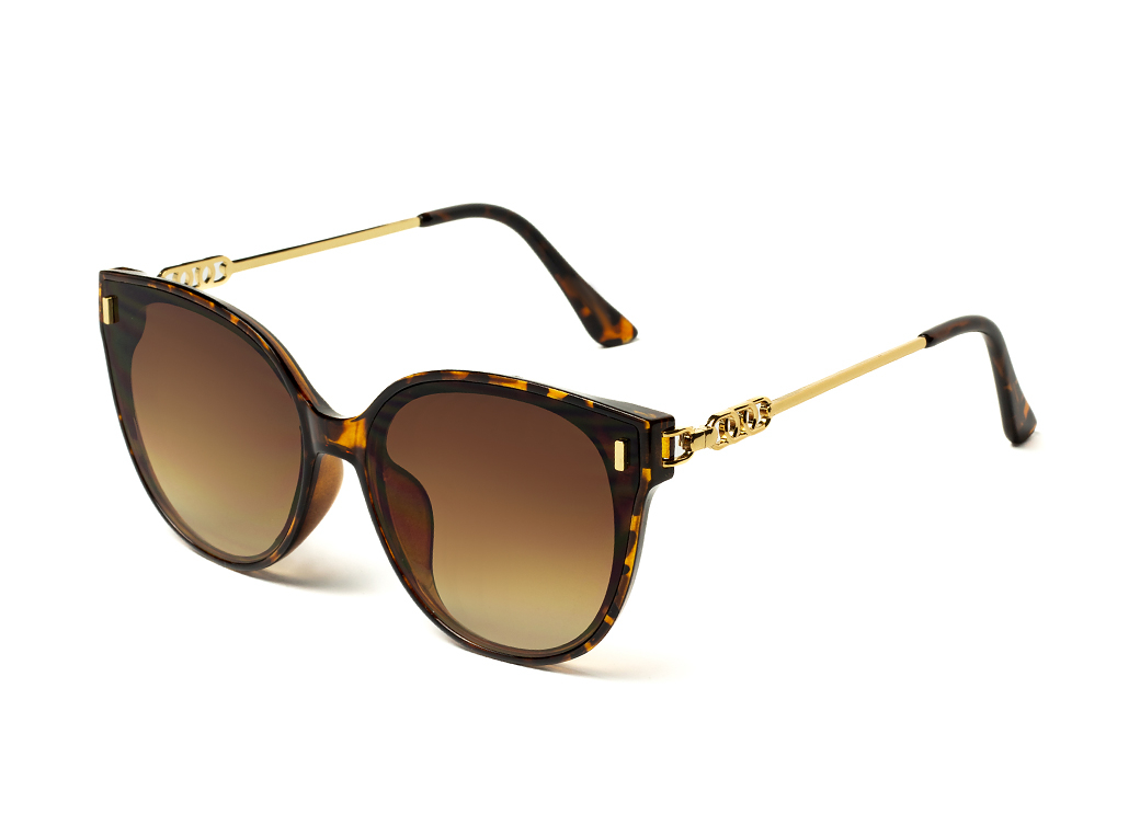 Okulary przeciwsłoneczne o lekko owalnym kształcie w kolorze brąz panterka.Metalowy zausznik z delikatnym zdobieniem.