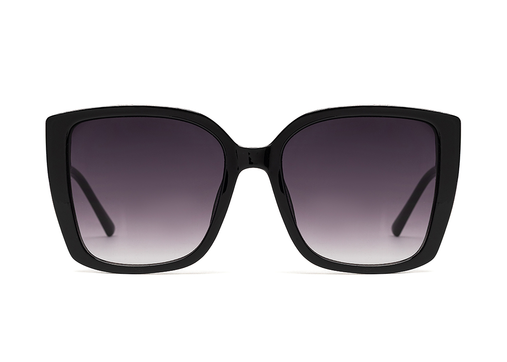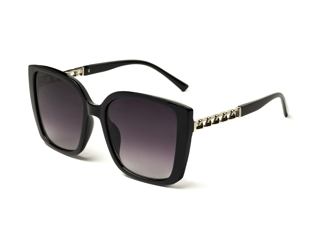 Duże kwadratowe okulary przeciwsłoneczne w kolorze czarnym.Elegancki metalowy motyw na zauszniku.