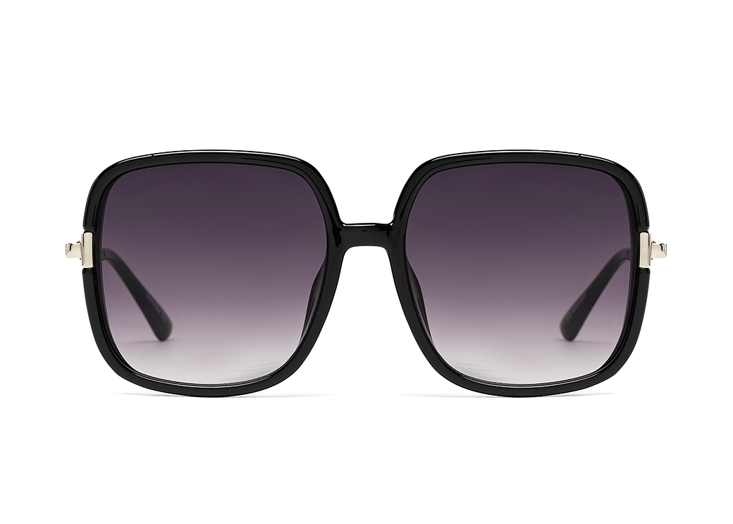 Duże,kwadratowe okulary przeciwsłoneczne w kolorze czarnym.Delikatny, metalowy zausznik.