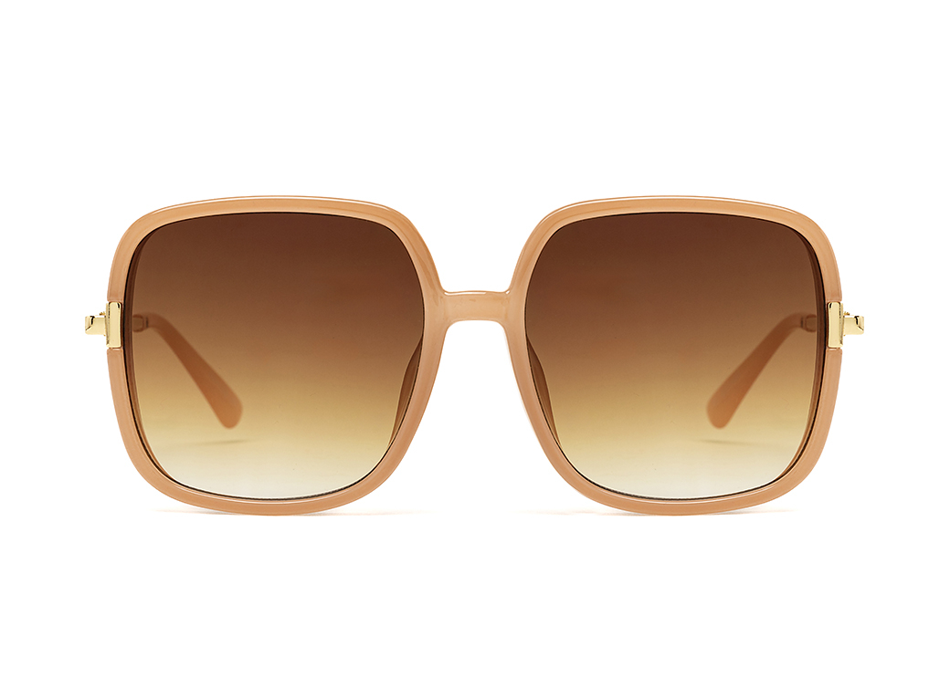 Duże,kwadratowe okulary przeciwsłoneczne w kolorze beżowym.Delikatny, metalowy zausznik.