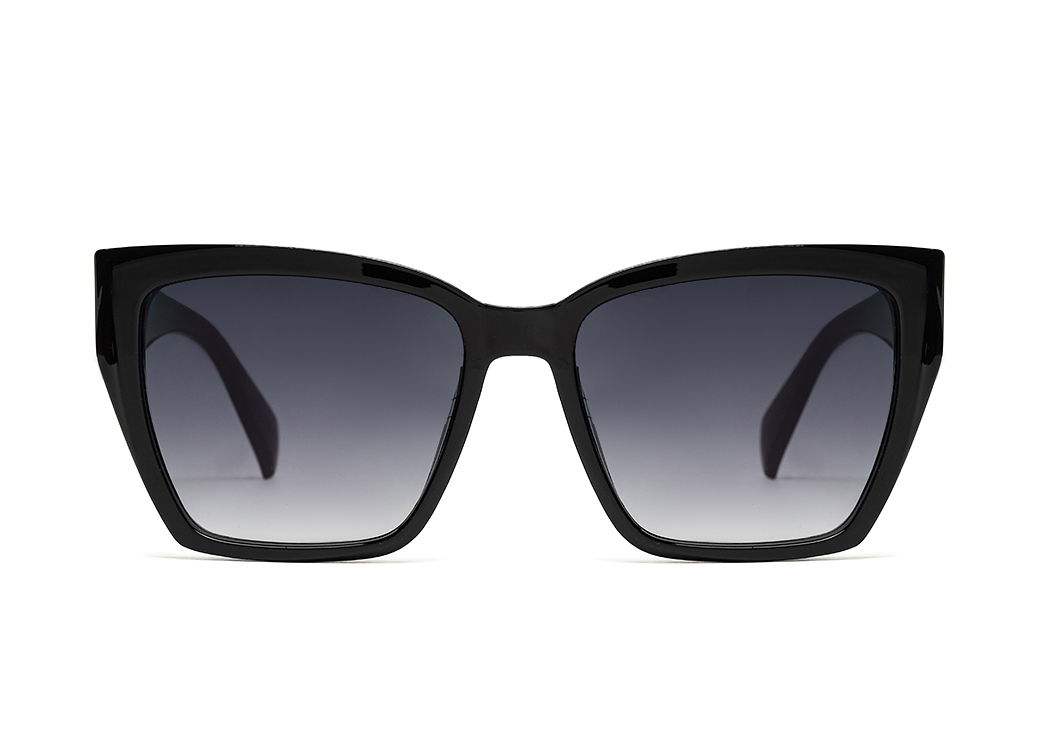 Duże,klasyczne okulary przeciwsłoneczne w kolorze czarnym.Szeroki,dwukolorowy zausznik.