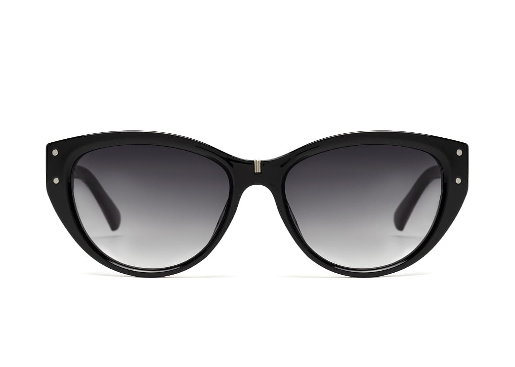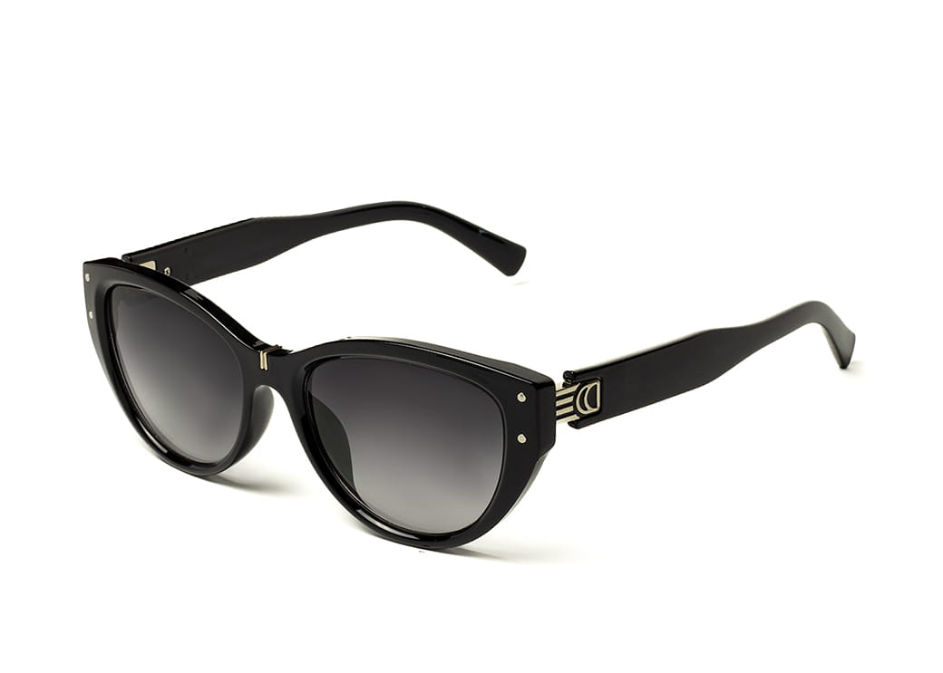 Klasyczne okulary przeciwsłoneczne w kolorze czarnym z polaryzacją.Gustowne metalowe zdobienie na zauszniku.