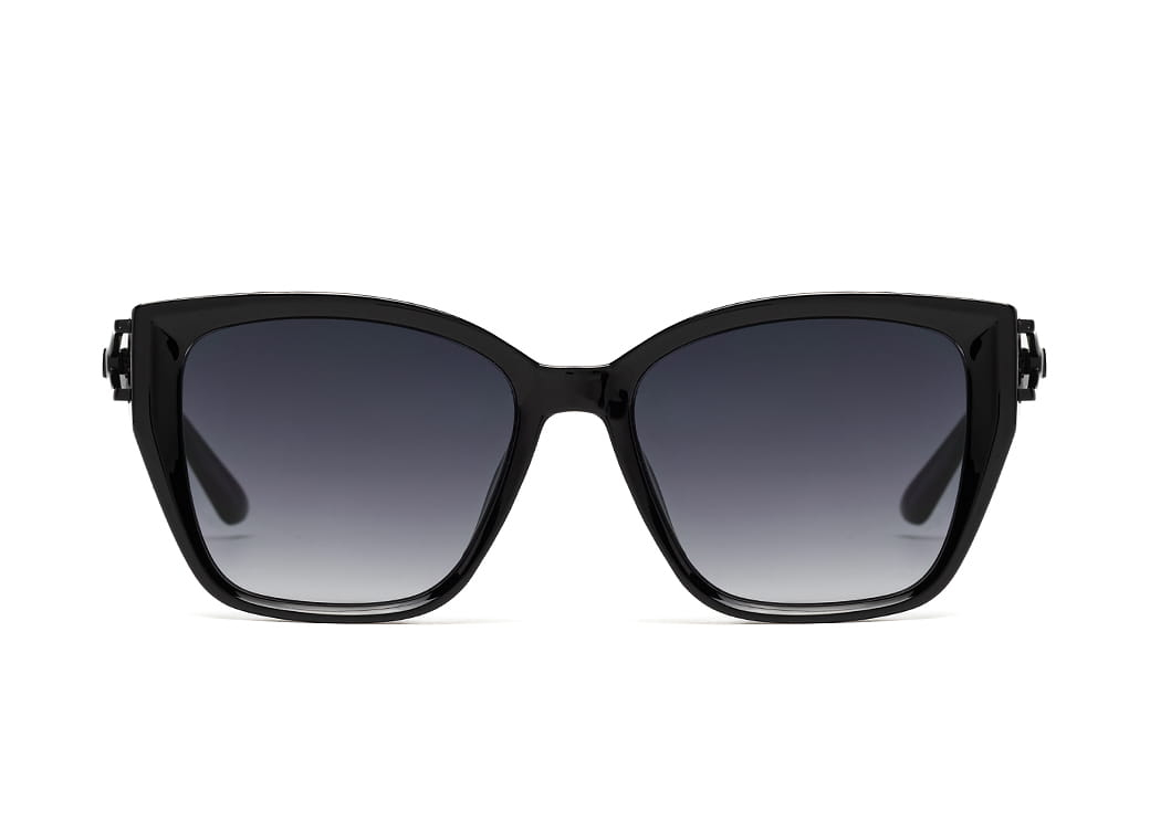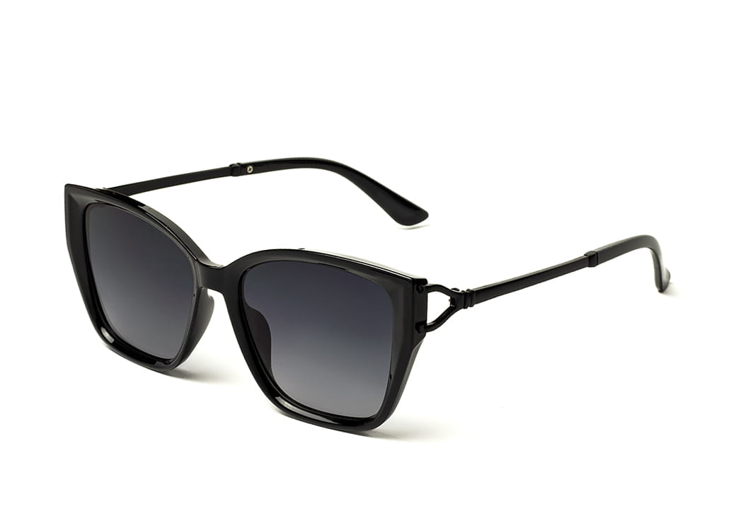 Klasyczne okulary przeciwsłoneczne w kolorze czarnym z polaryzacją.Delikatny metalowy zausznik.