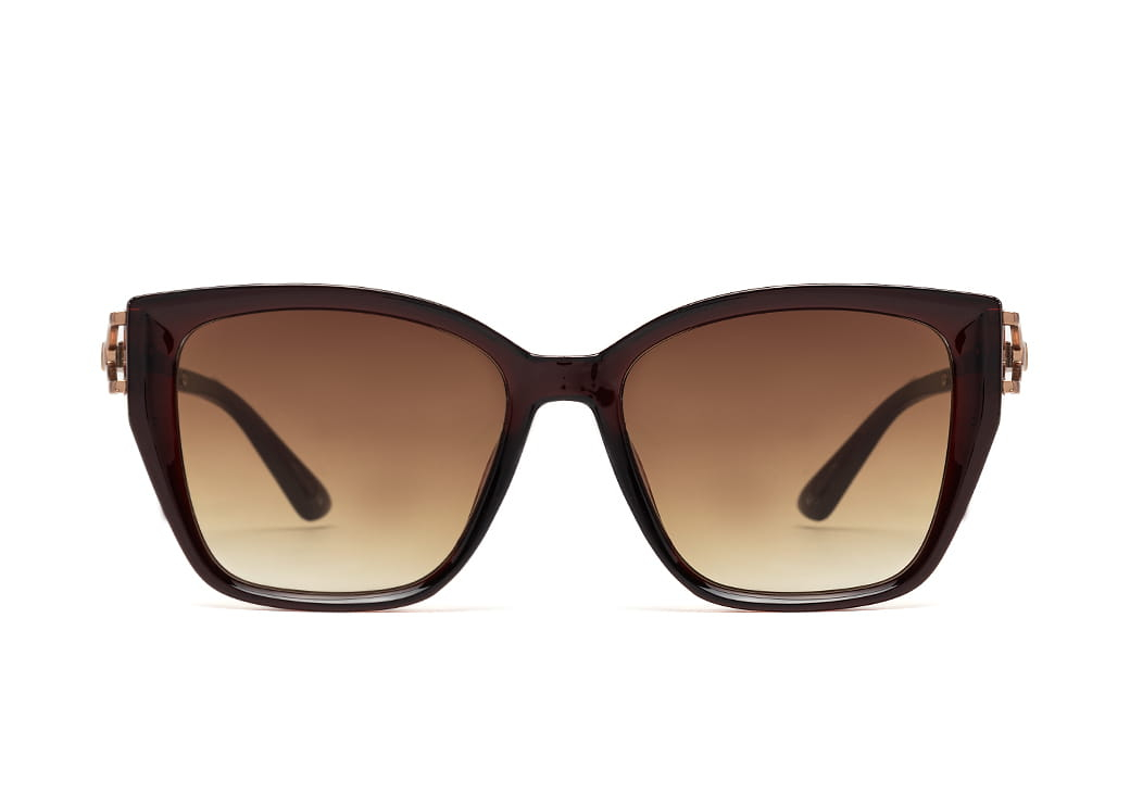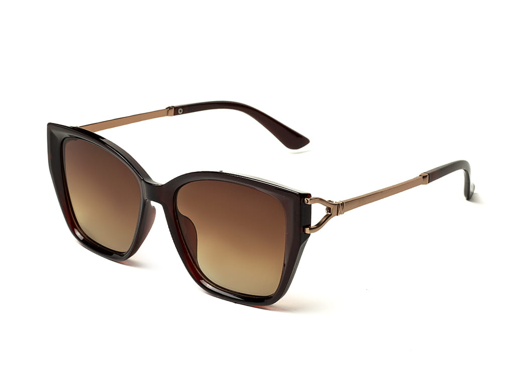 Klasyczne okulary przeciwsłoneczne w kolorze brązowym z polaryzacją.Delikatny metalowy zausznik.