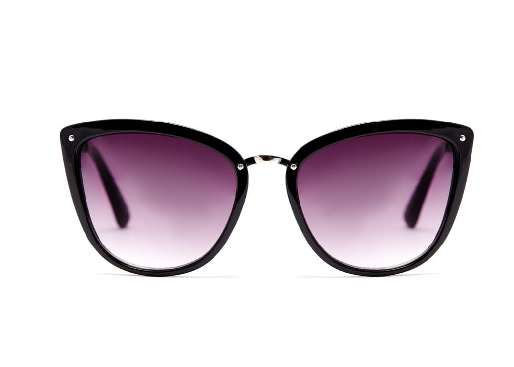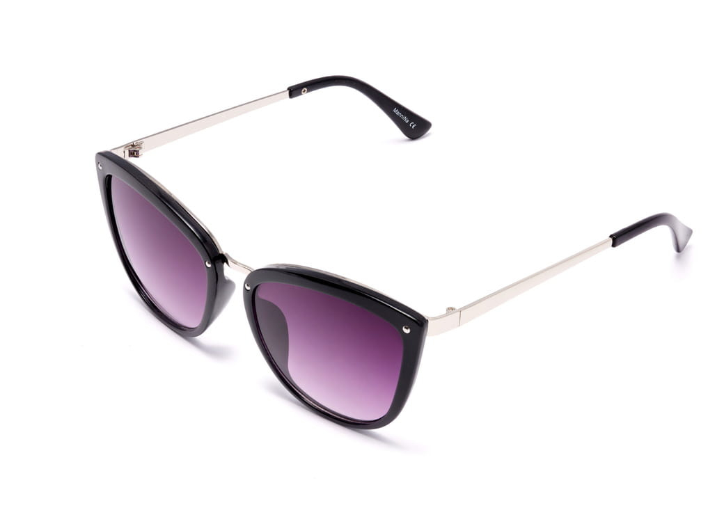 Okulary przeciwsłoneczne z polaryzacją o kształcie "kocie oko" w kolorze czarnym.Delikatny metalowy zausznik.