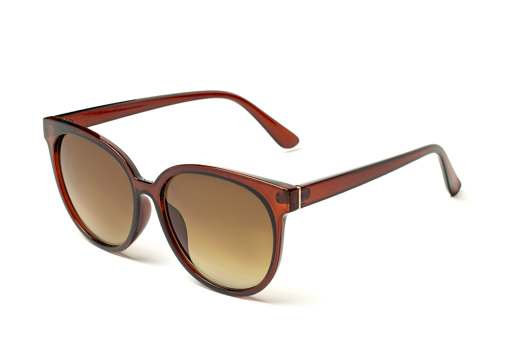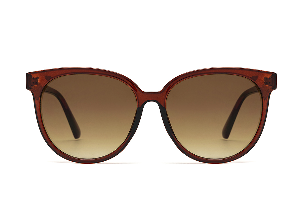Okulary przeciwsłoneczne o owalnym kształcie w kolorze brązowym.