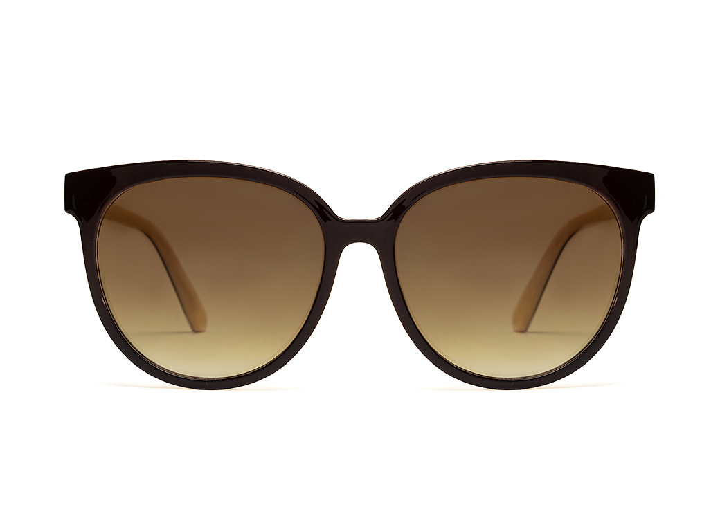 Okulary przeciwsłoneczne o owalnym kształcie w kolorze brązowo-beżowym.