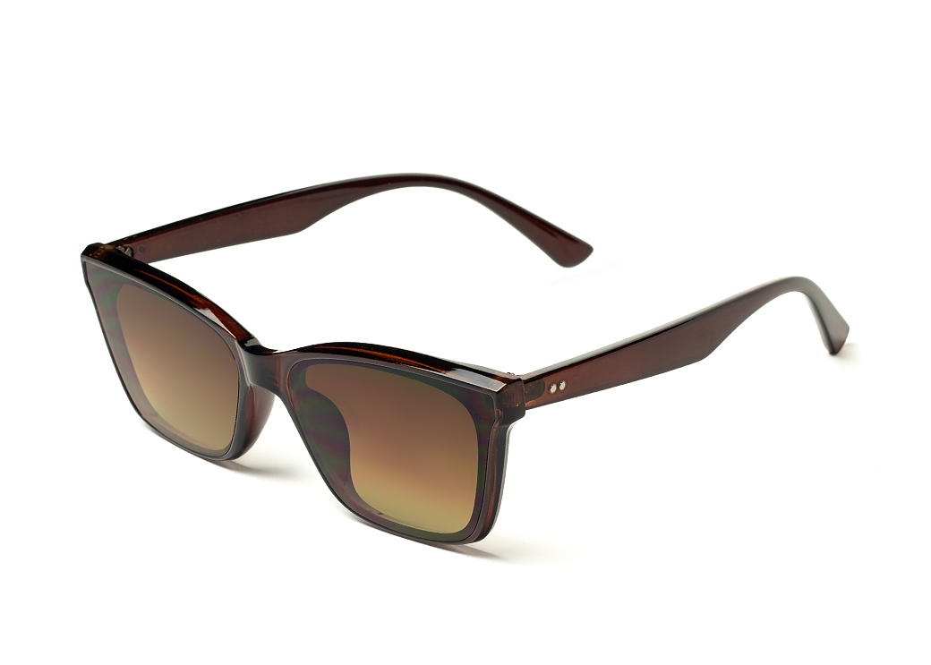 Klasyczne okulary przeciwsłoneczne w kolorze brązowym.Mały element dekoracyjny na zauszniku.