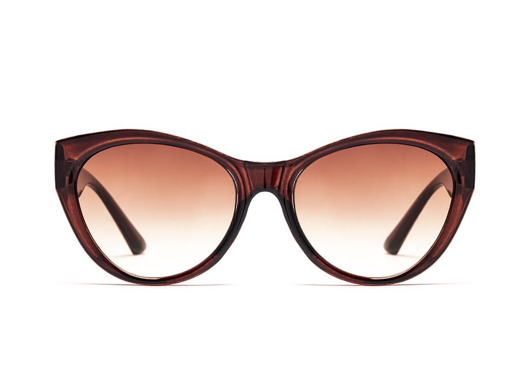 Okulary przeciwsłoneczne w kolorze brązowym o kształcie "kocie oko".Eleganckie zdobienie na zauszniku.