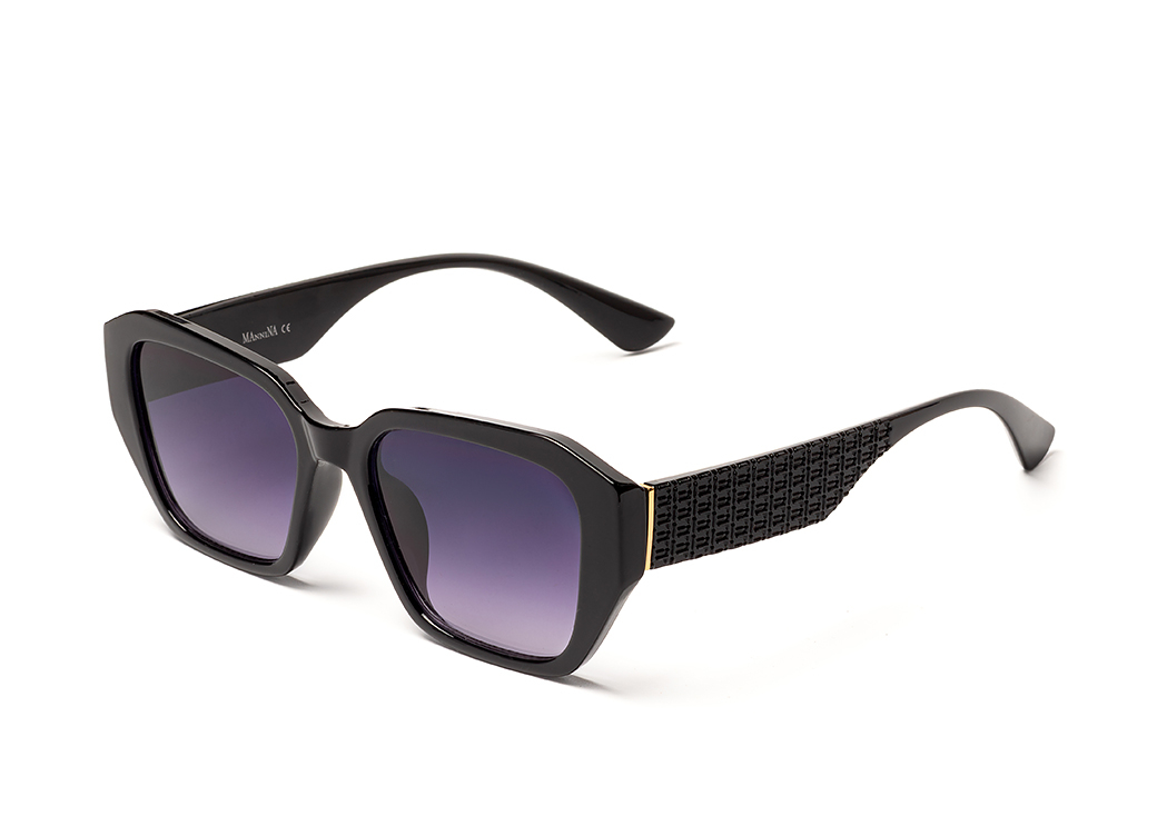 Okulary przeciwsłoneczne w kolorze czarnym o kształcie geometrycznym.Delikatny element ozdobny za zauszniku.