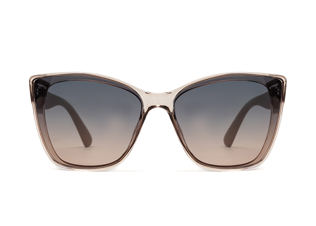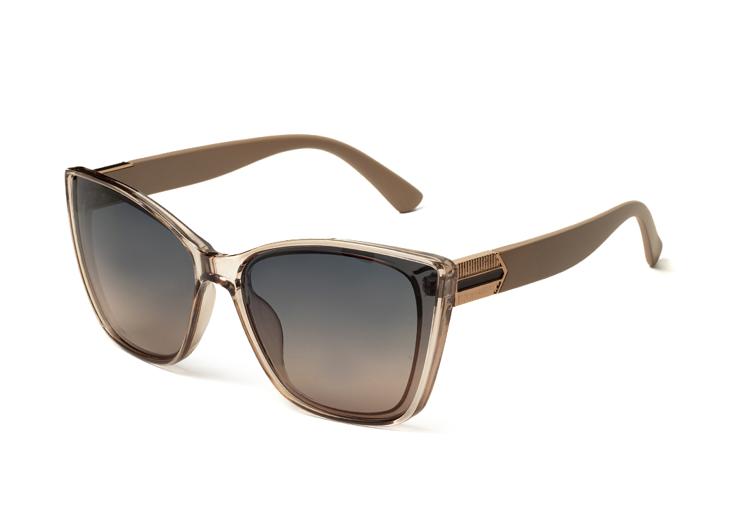 Klasyczne okulary przeciwsłoneczne w kolorze beżowym.Gustowne metalowe zdobienie na zauszniku.