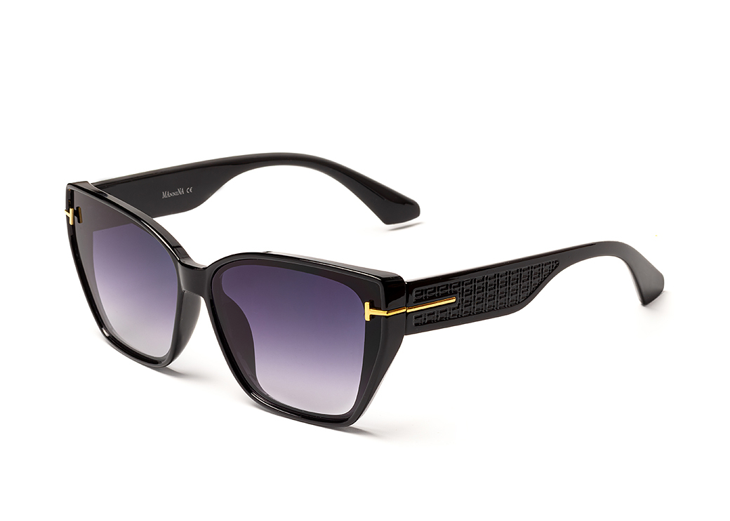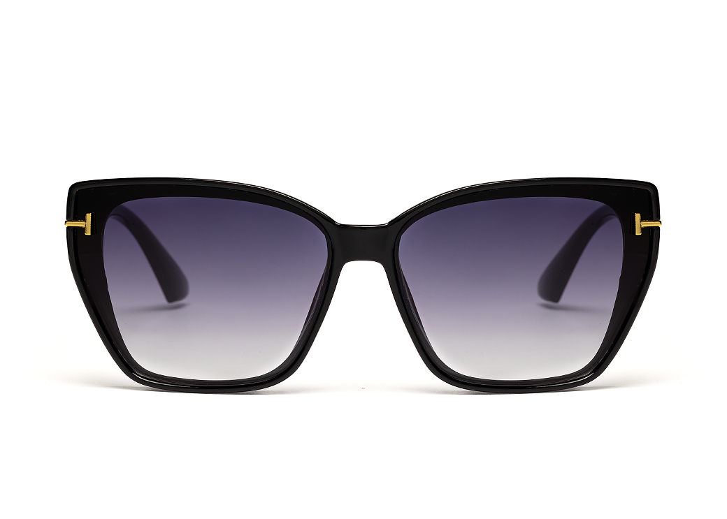 Klasyczne okulary przeciwsłoneczne w kolorze czarnym z delikatnym zdobieniem.