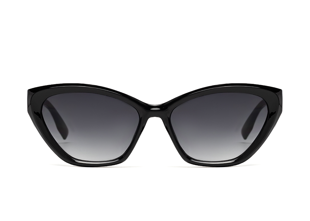 Okulary przeciwsłoneczne o kształcie "kocie oko" w kolorze czarnym.Element dekoracyjny na zauszniku