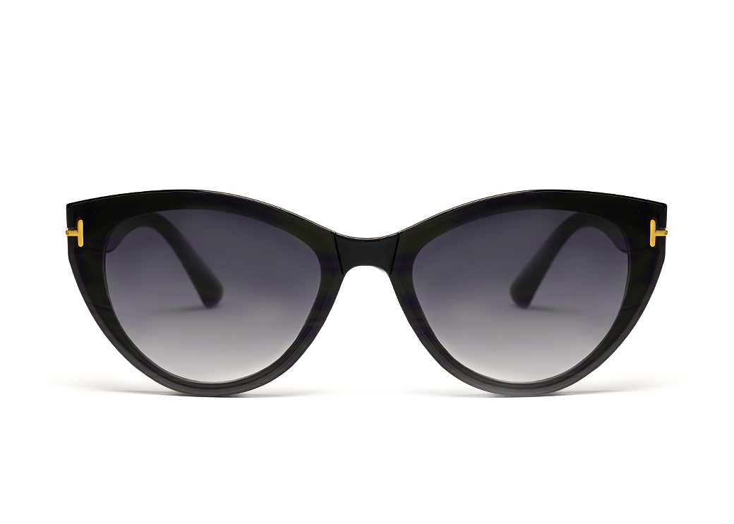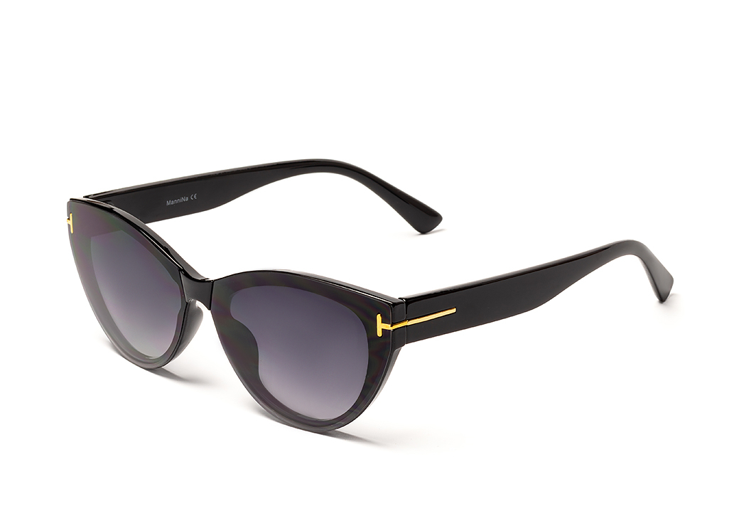 Okulary przeciwsłoneczne w kolorze czarnym o kształcie "kocie oko" z lekkim elementem zdobnym.