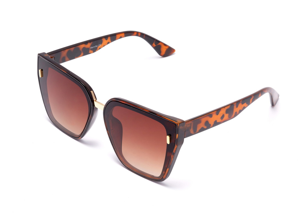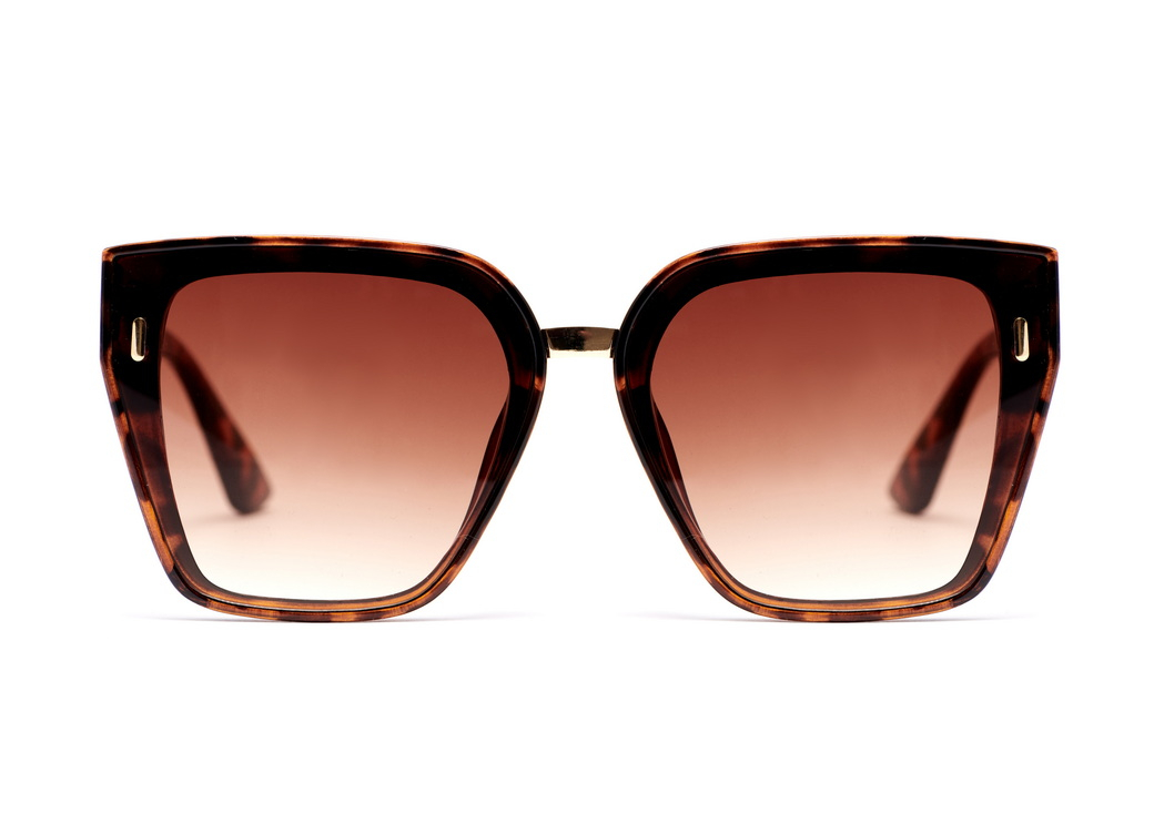 Duże,klasyczne okulary przeciwsłoneczne w kolorze panterka brąz.Lekkie zdobienie na froncie oprawki.