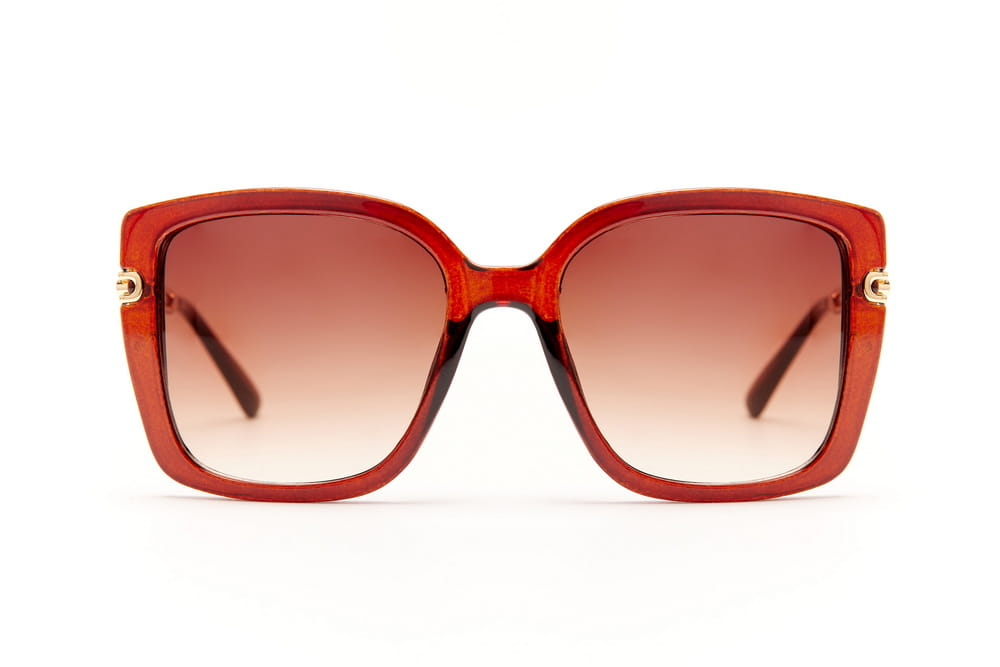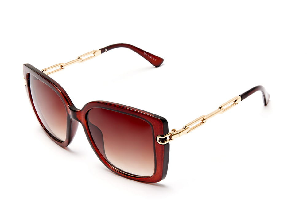 Oryginalne,kwadratowe okulary przeciwsłoneczne w kolorze brązowym.Elegancki,metalowy zausznik.
