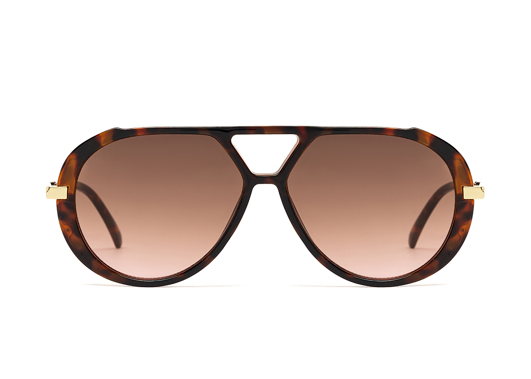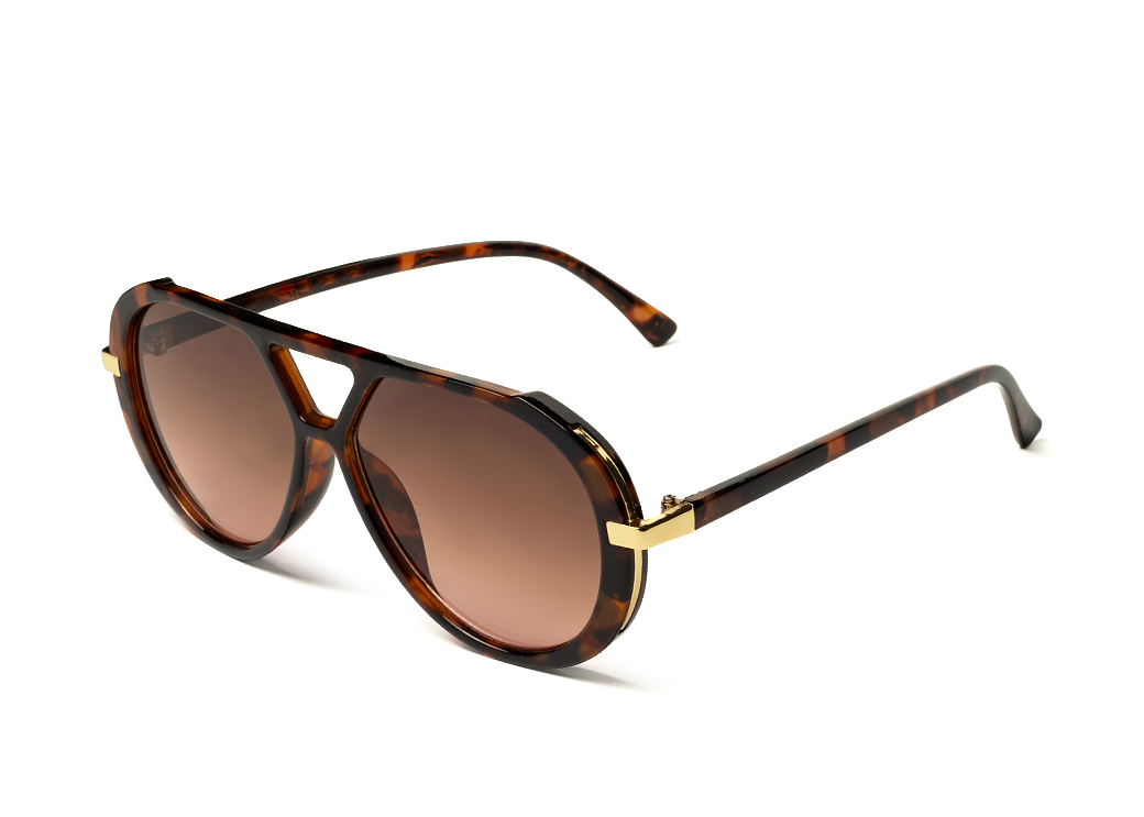 Eleganckie pilotki w panterkowo-brązowej oprawie.Mały element dekoracyjny na zauszniku.