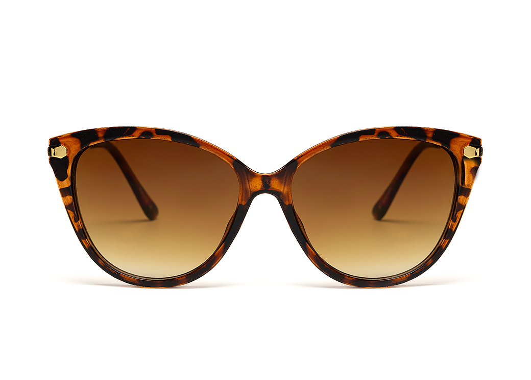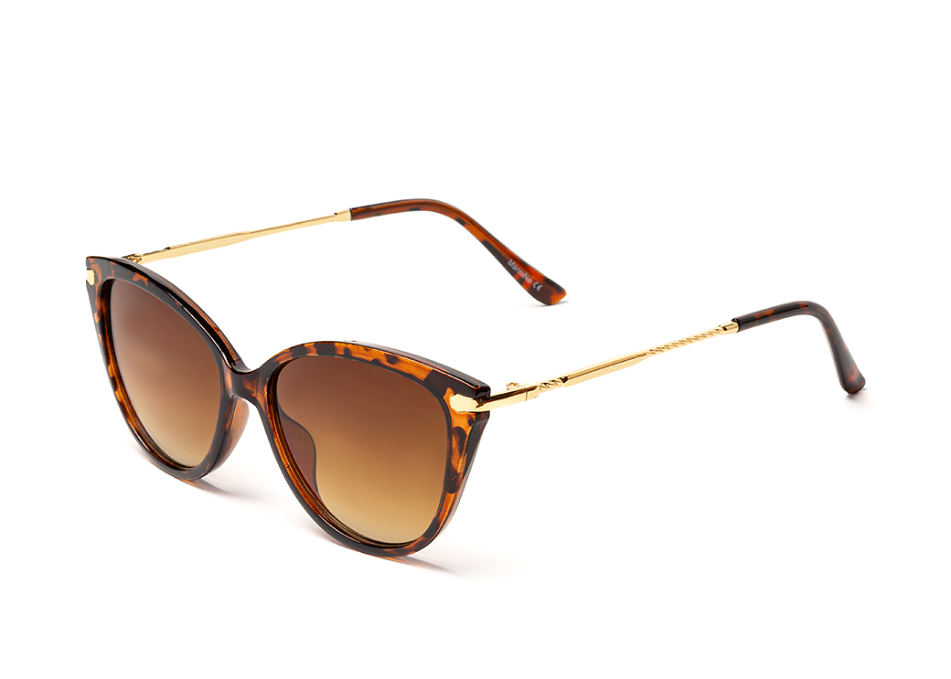 Okulary przeciwsłoneczne w kolorze brąz panterka o kształcie "kocie oko".Delikatny metalowy zausznik