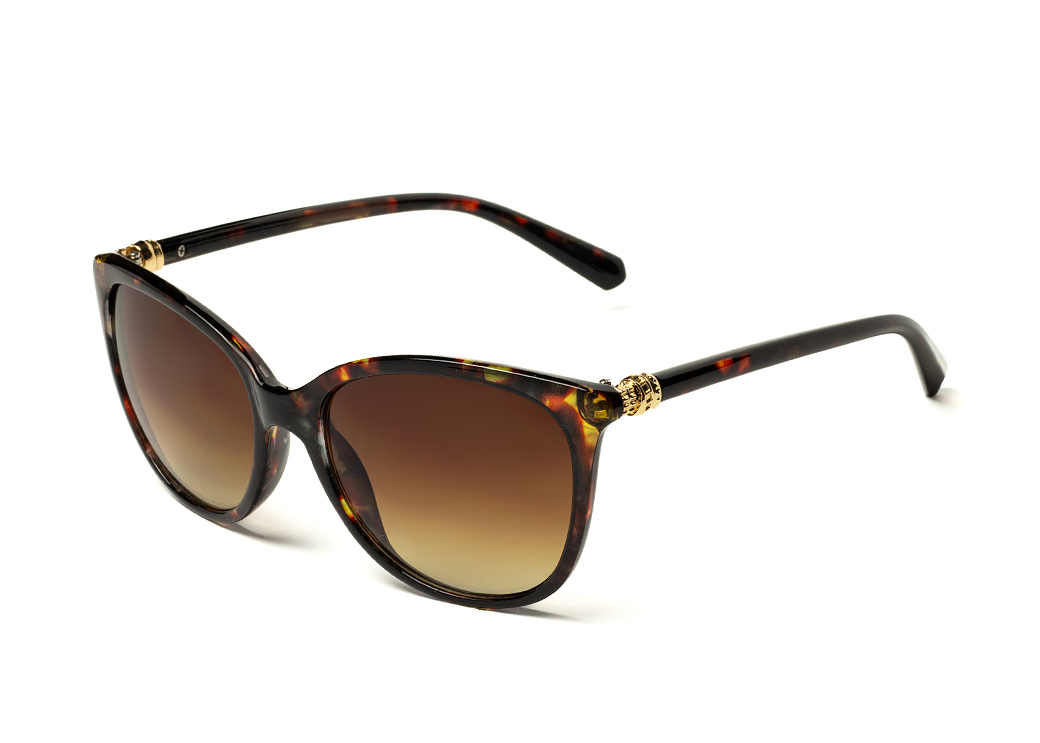 Okulary przeciwsłoneczne o kształcie "kocie oko" w kolorze brąz panterka.Mały element dekoracyjny na zauszniku.