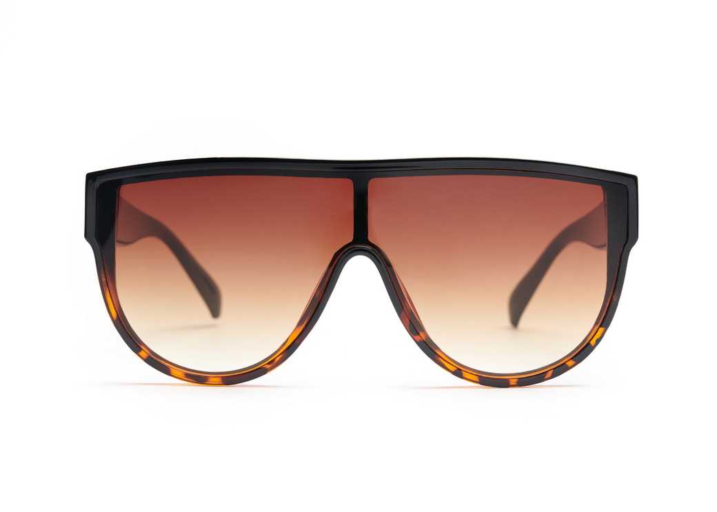 Duże okulary przeciwsłoneczne o kształcie "maska" w kolorze brąz panterka z czarnymi zausznikami.
