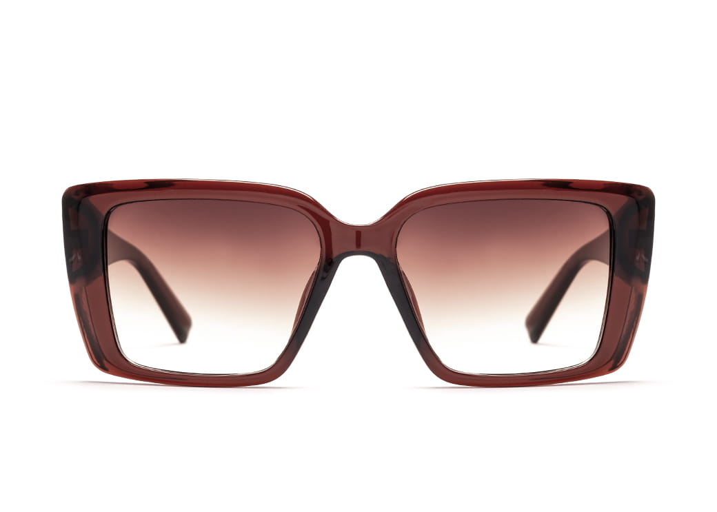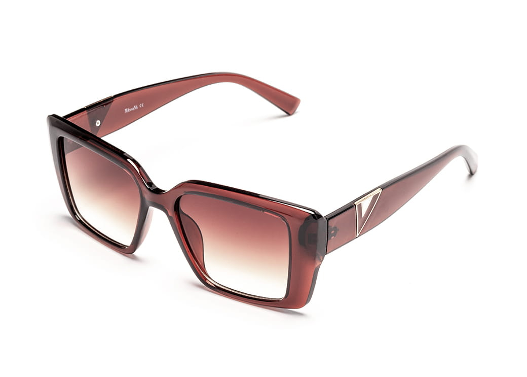Klasyczne okulary przeciwsłoneczne w kolorze brązowym.Element dekoracyjny na zauszniku.