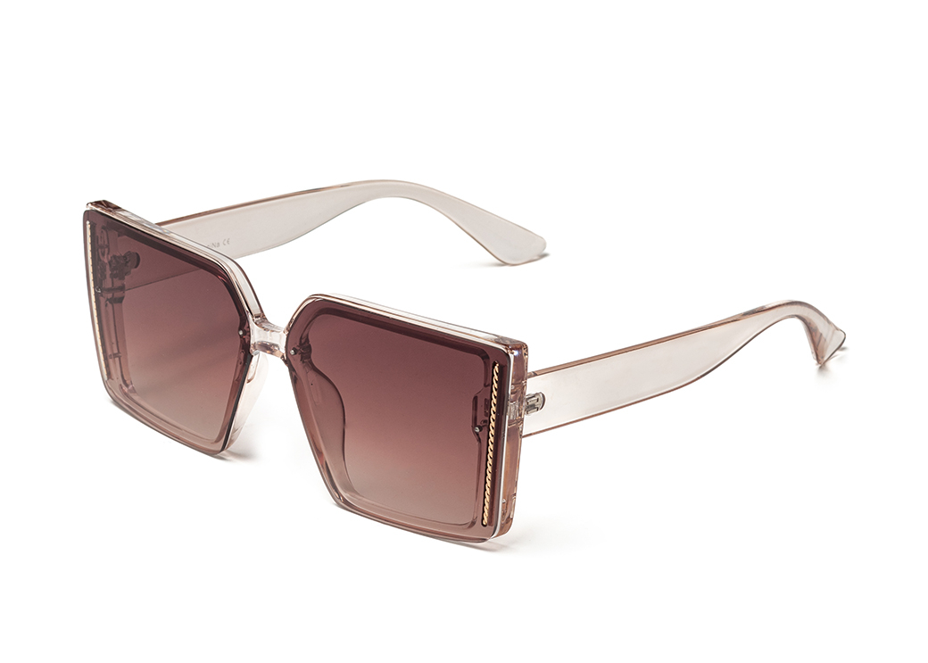 Duże,kwadratowe okulary przeciwsłoneczne w kolorze beżowym.Eleganckie zdobienie na froncie oprawki.