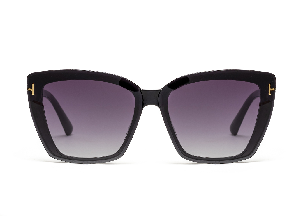 Klasyczne okulary przeciwsłoneczne w kolorze czarnym z delikatnym zdobieniem na froncie oprawki.
