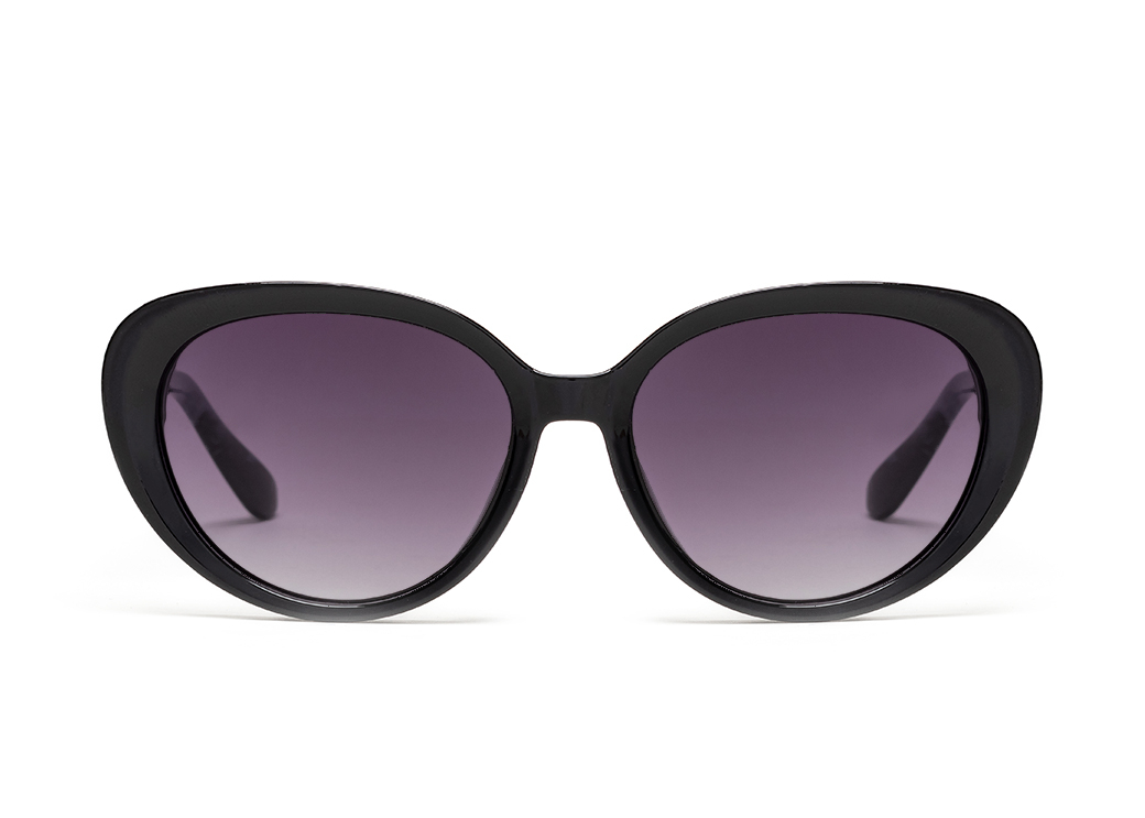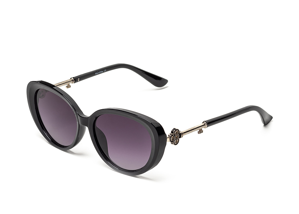 Owalne okulary przeciwsłoneczne w kolorze czarnym.Elegancki,zdobiony zausznik.