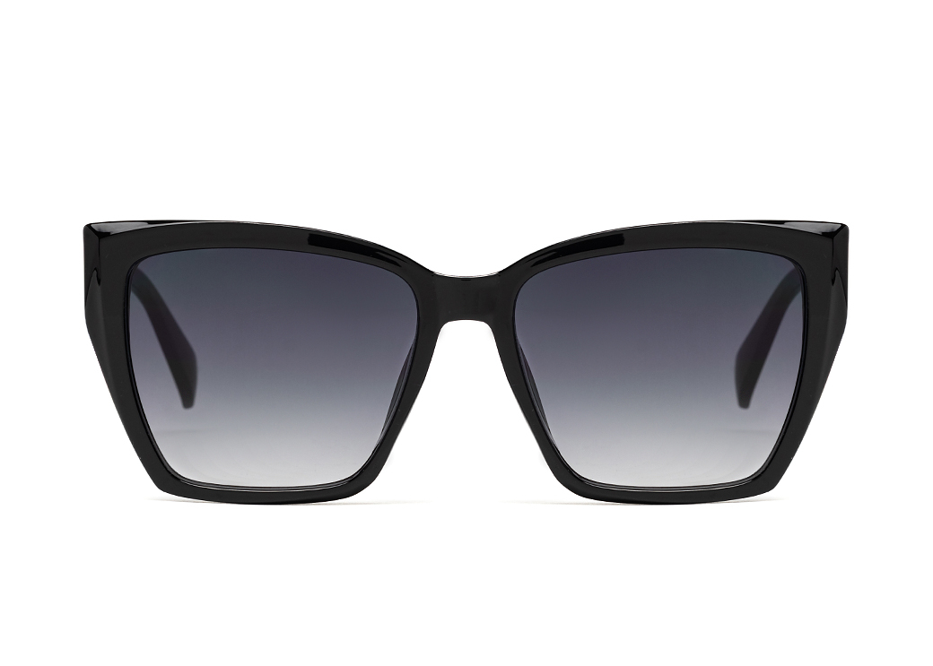 Duże,klasyczne okulary przeciwsłoneczne w kolorze czarnym.Szeroki,dwukolorowy zausznik.