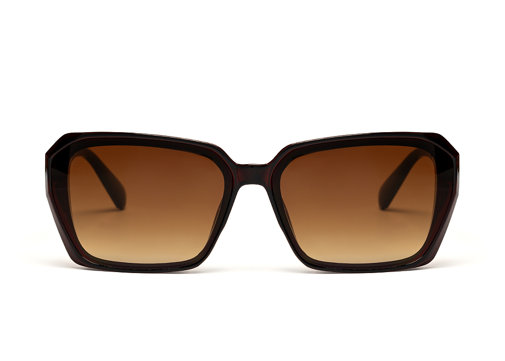 Klasyczne damskie okulary przeciwsłoneczne w kolorze brązowym.Metalowe zdobienie na zauszniku.
