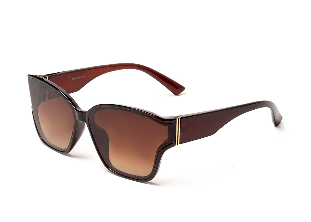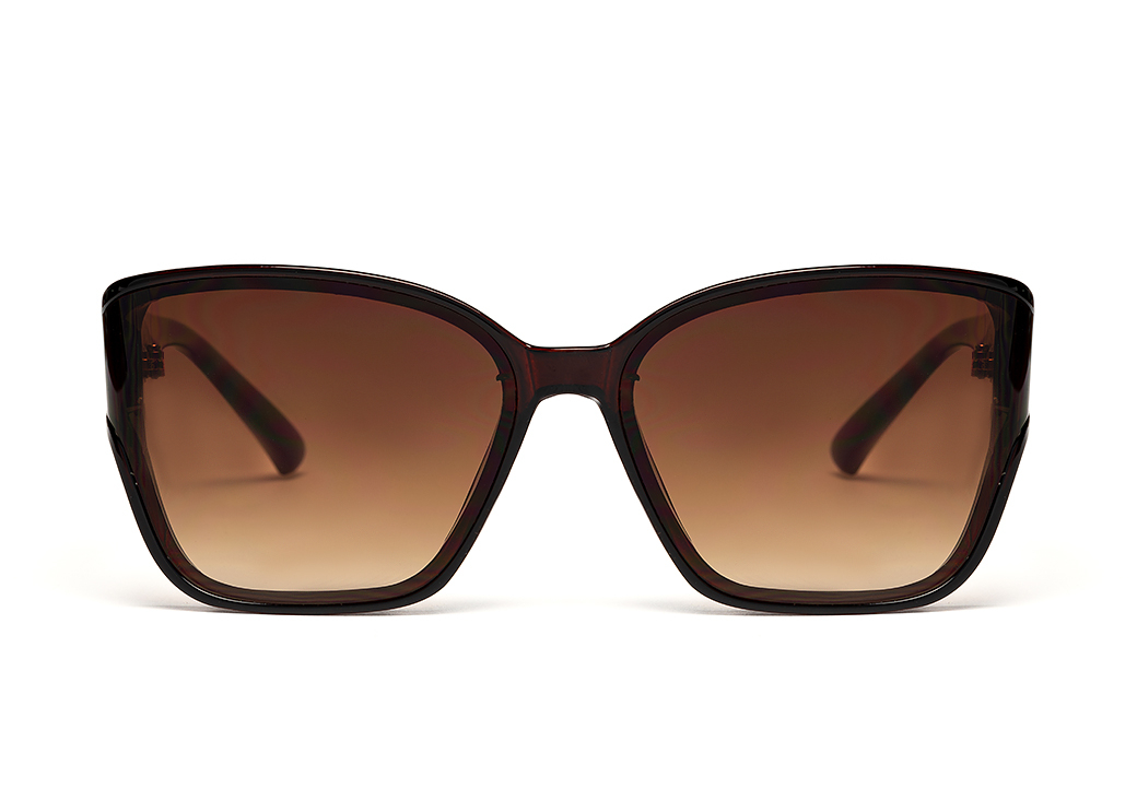 Klasyczne okulary przeciwsłoneczne w kolorze brązowym.Delikatne zdobienie zausznika