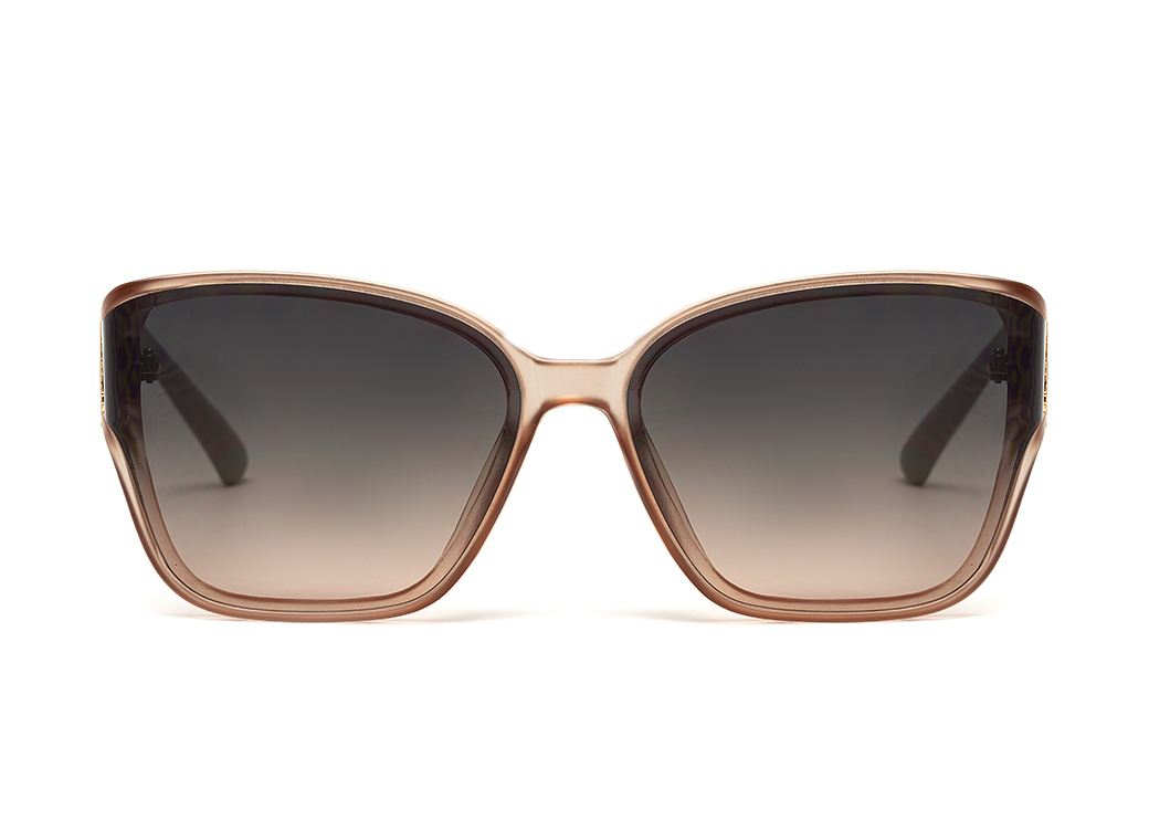 Klasyczne okulary przeciwsłoneczne w kolorze różowym.Delikatne zdobienie zausznika