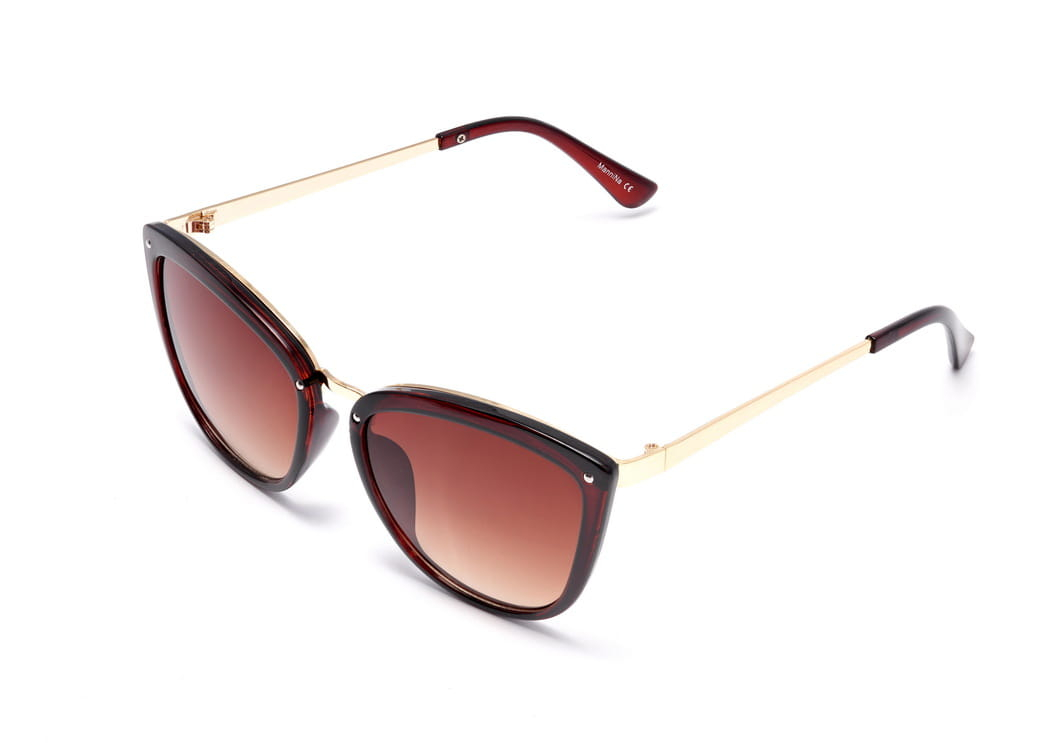 Okulary przeciwsłoneczne z polaryzacją o kształcie "kocie oko" w kolorze brązowym.Delikatny metalowy zausznik.