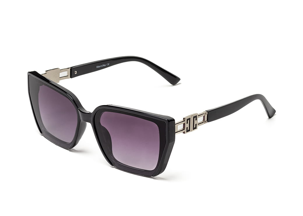 Klasyczne okulary przeciwsłoneczne z polaryzacją w kolorze czarnym.Gustowne zdobienie zausznika.