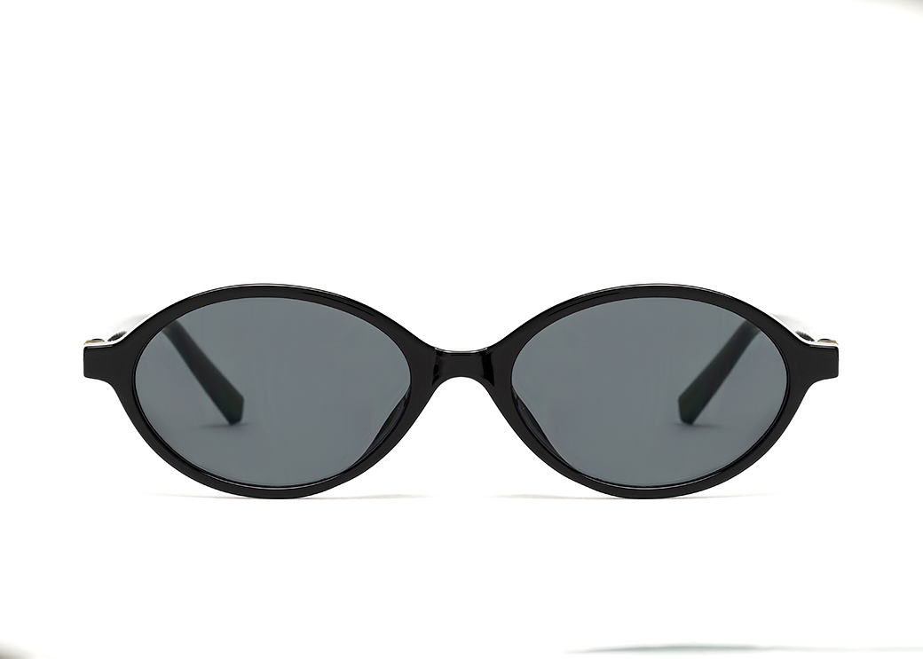 Małe okulary przeciwsłoneczne o modnym kształcie "jajeczko" w kolorze czarnym,soczewka ciemnoszara.Wykonane z lekkiego i elastycznego materiału TR90.