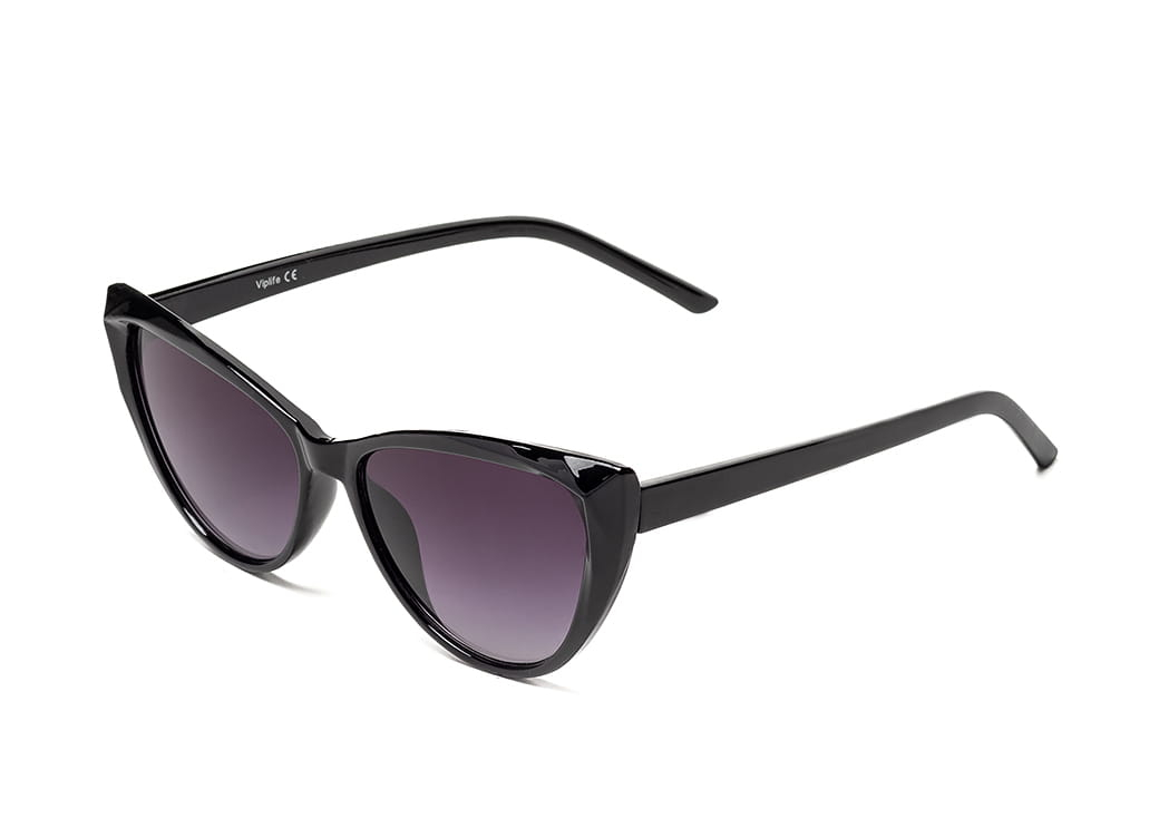Okulary przeciwsłoneczne o kształcie "kocie oko" w kolorze czarnym.