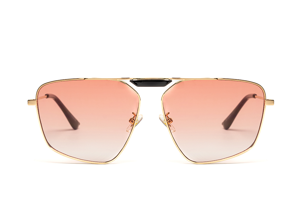 Delikatne metalowe okulary przeciwsłoneczne o kształcie aviator,soczewka w kolorze pomarańczowym.