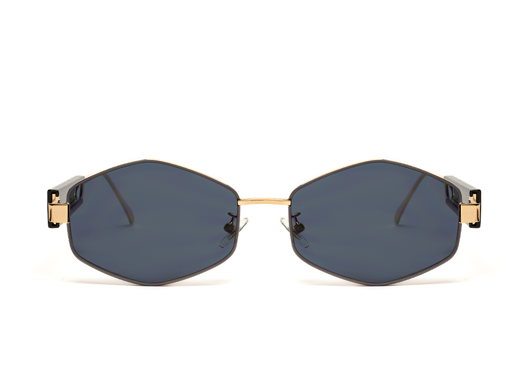 Metalowe okulary przeciwsłoneczne damskie o geometrycznym kształcie.Zausznik metalowy z elementem plastikowym w kolorze czarnym.
