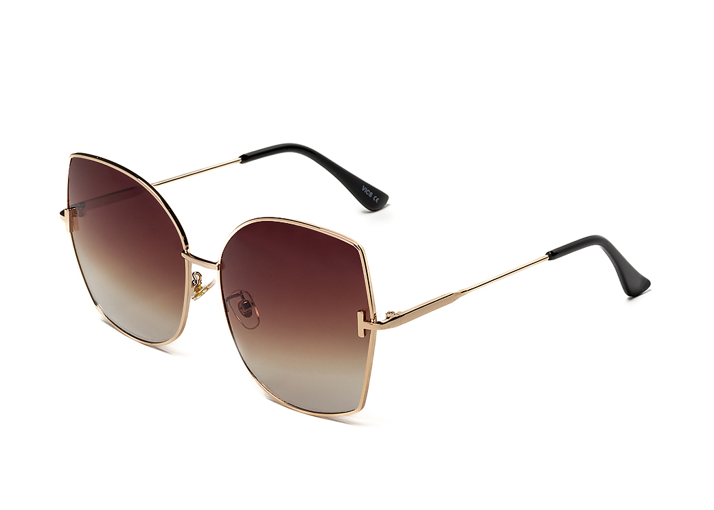 Delikatne,metalowe okulary przeciwsłoneczne, soczewka brązowa.