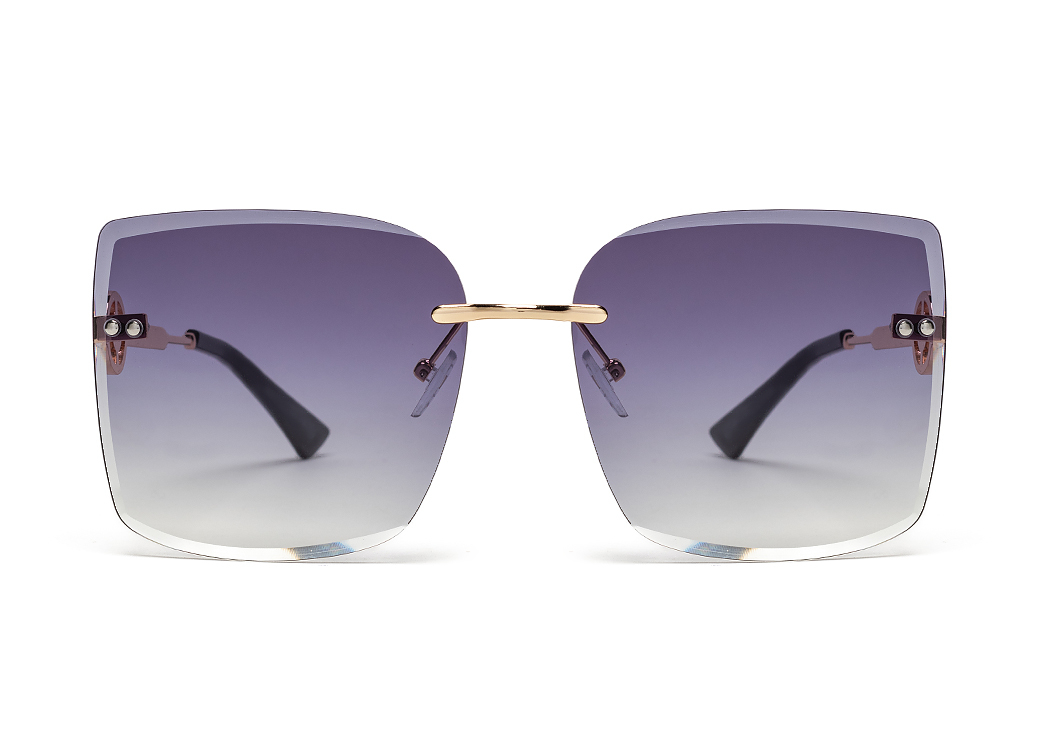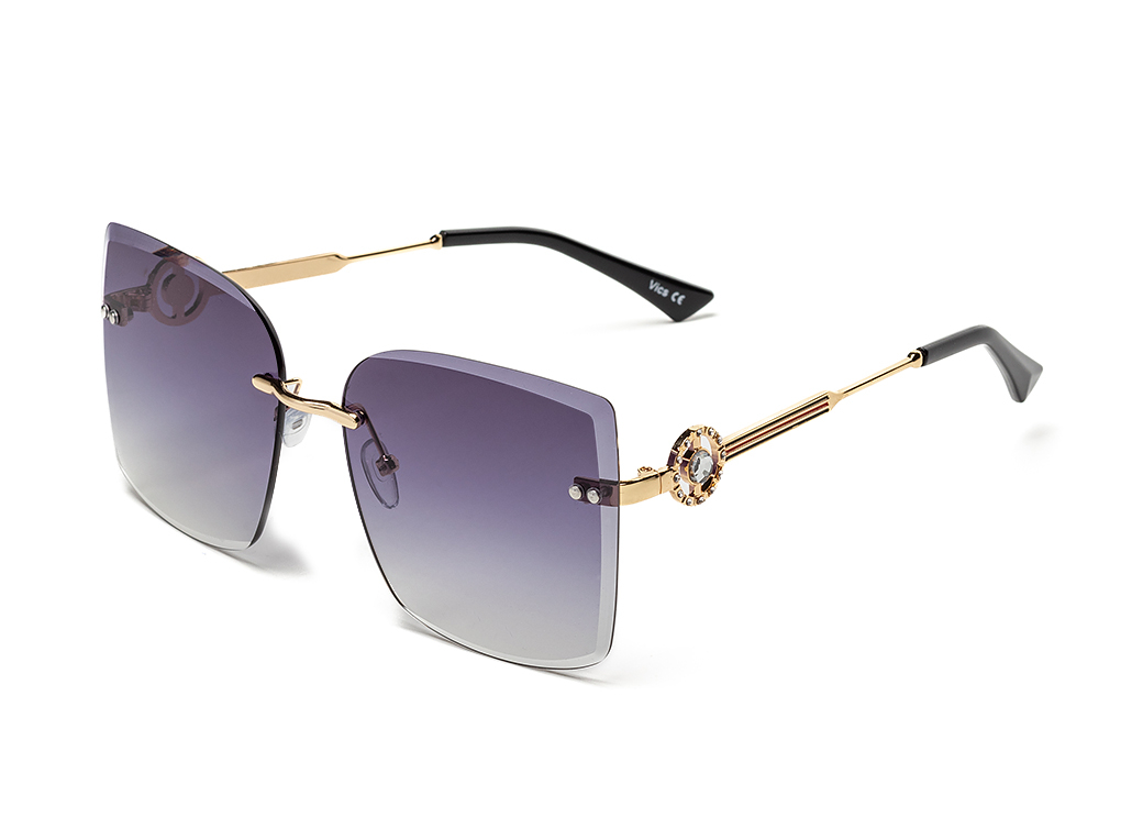 Metalowe okulary przeciwsłoneczne z eleganckim, zdobionym zausznikiem.Soczewka ciemnoszara.