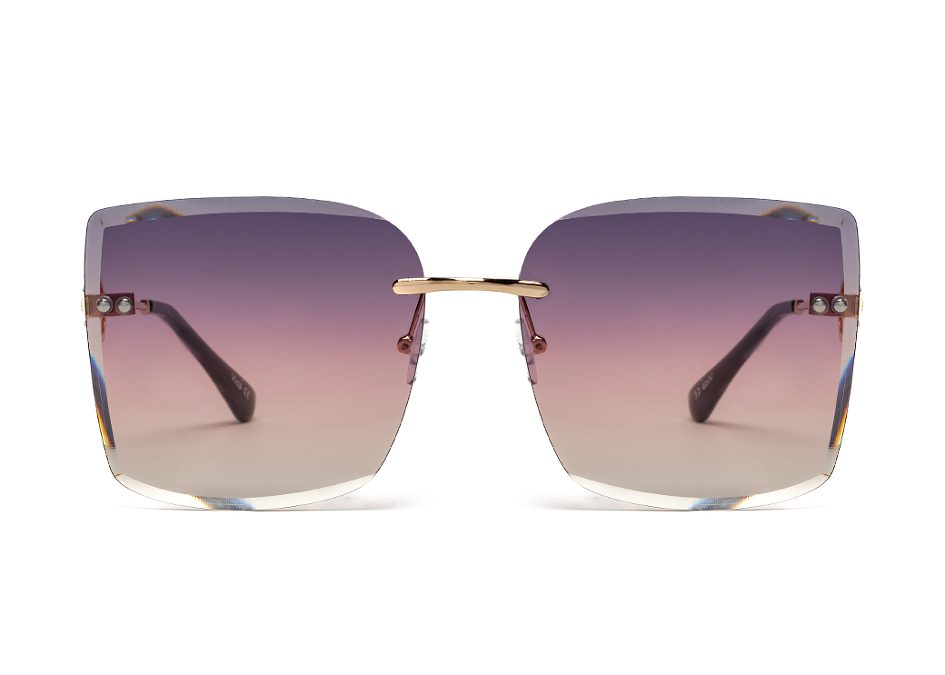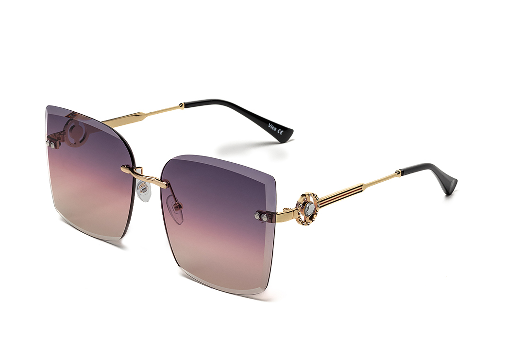 Metalowe okulary przeciwsłoneczne z eleganckim, zdobionym zausznikiem.Soczewka amarantowa.