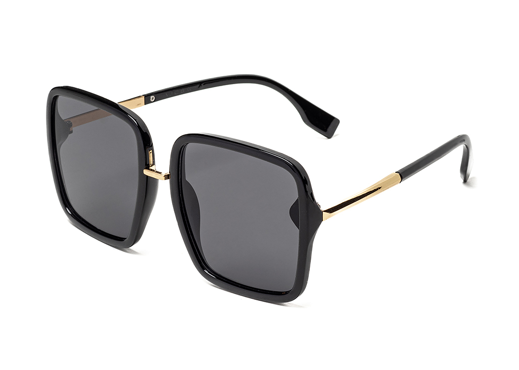 Duże okulary przeciwsłoneczne w stylu "Muchy",w kolorze czarnym.Delikatny metalowy zausznik.