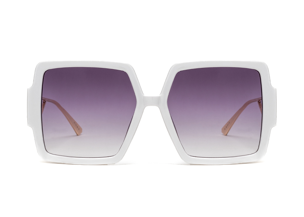 Duże,kwadratowe okulary przeciwsłoneczne w kolorze białym.Elegancki,zdobiony zausznik.