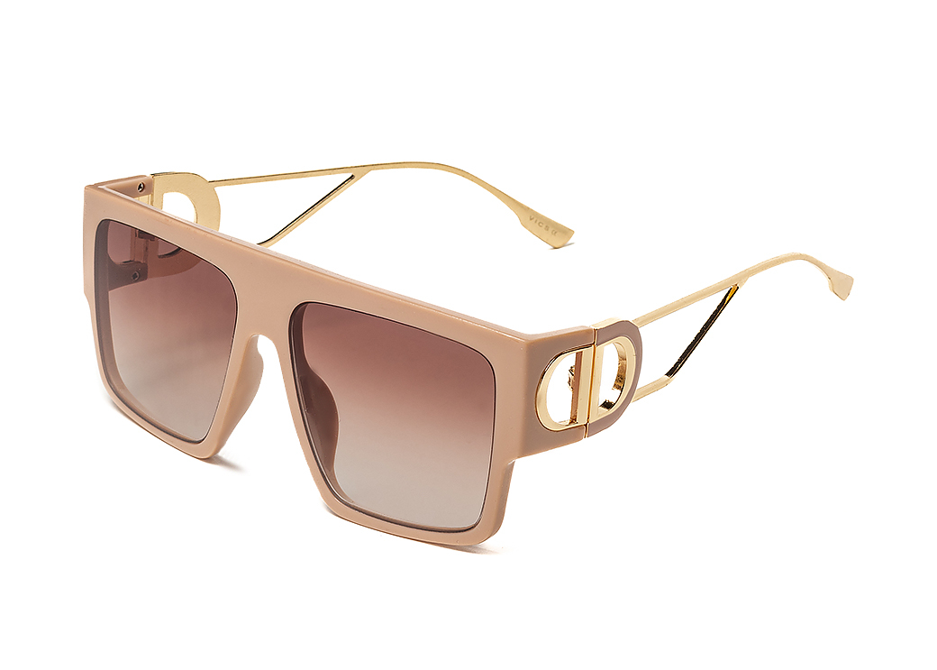 Duże okulary przeciwsłoneczne o kształcie "Maska" w kolorze beżowym.Zausznik z eleganckim zdobieniem.