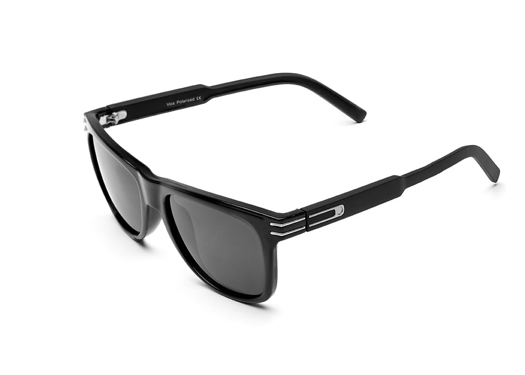 Klasyczne okulary przeciwsłoneczne z polaryzacją w kolorze czarnym,front błyszczący, zauszniki matowe.Wykonane z lekkiego i elastycznego materiału TR90.