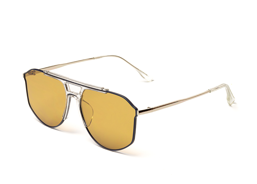 Delikatne metalowe okulary przeciwsłoneczne o kształcie aviator,soczewka w kolorze jasnobrązowym.
