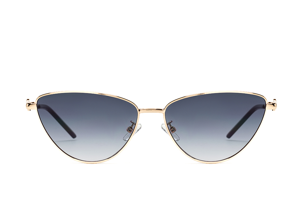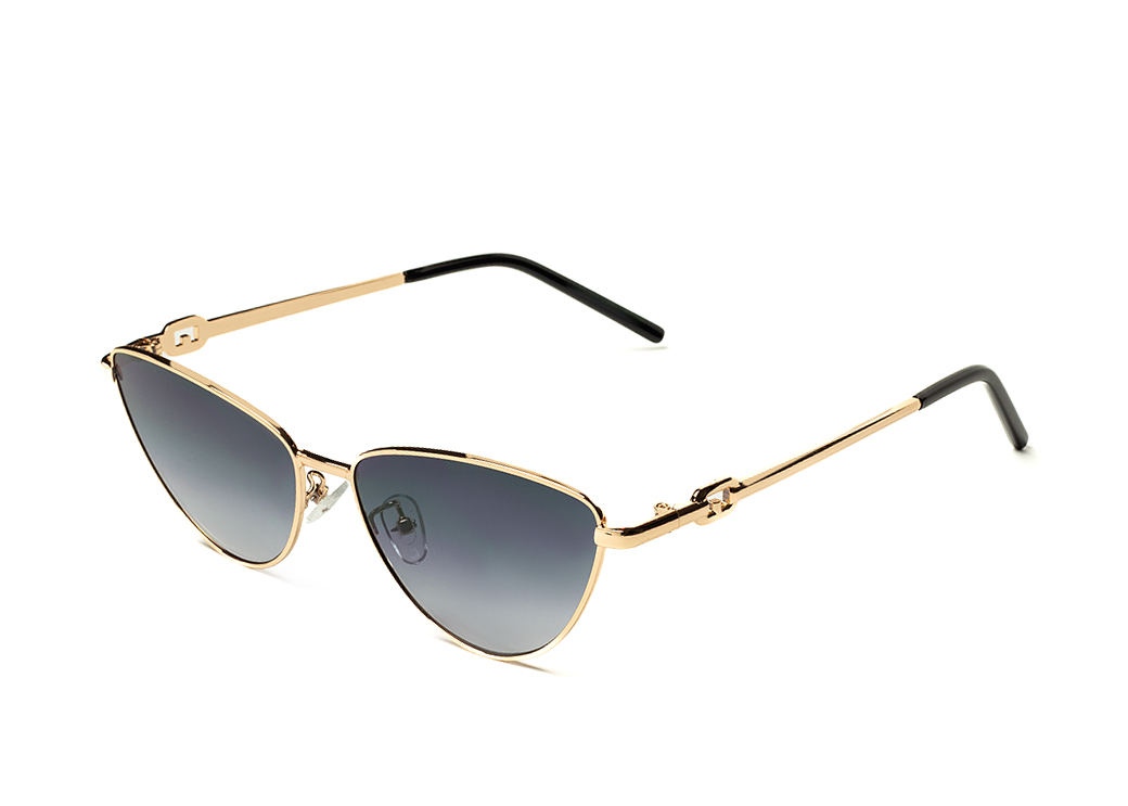 Okulary przeciwsłoneczne o kształcie "kocie oko",ciemnoszara soczewka, oryginalne metalowe zauszniki.