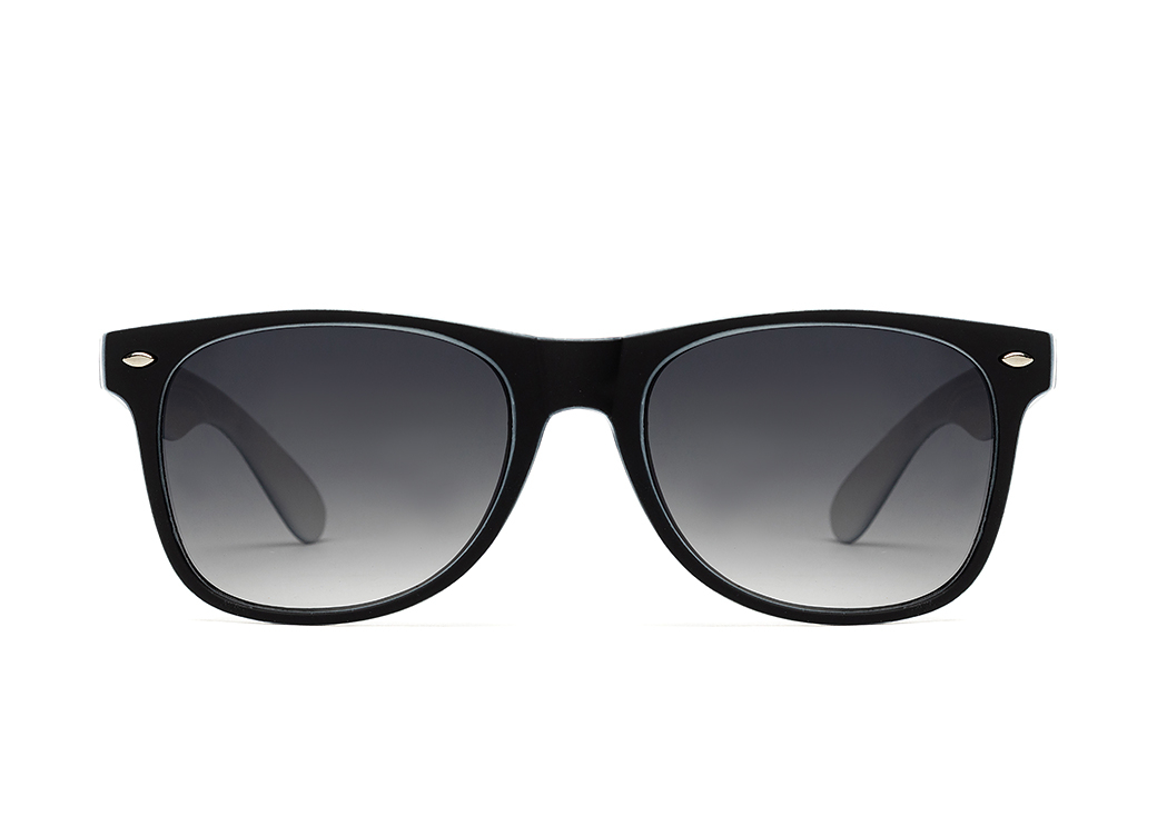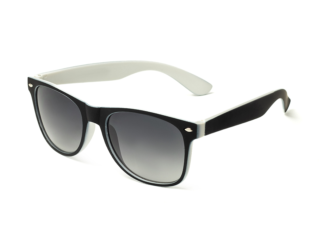 Ponadczasowe okulary przeciwsłoneczne męskie,soczewka w kolorze czarnym,oprawka wewnętrzna w kolorze białym.Wykonane z wysokiej jakości matowego plastiku.